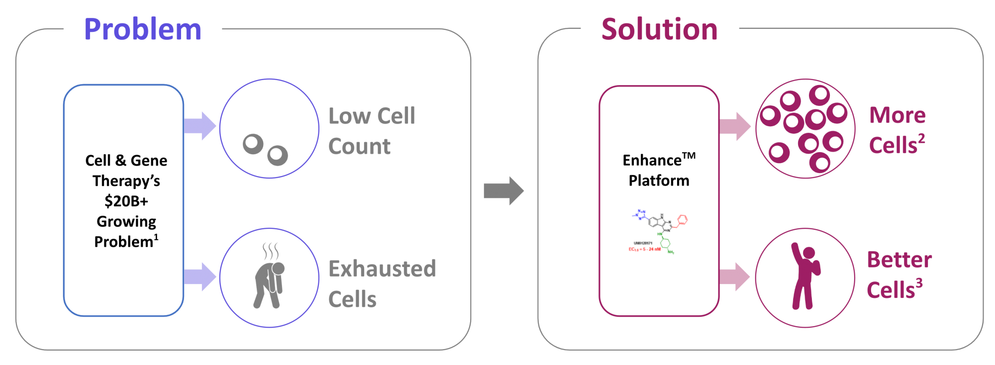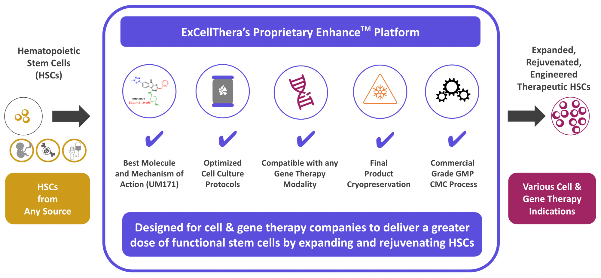 Proprietary platform designed to help cell & gene therapy companies deliver greater doses of functional cells by expanding HSCs from any source and counteracting the effects of cell manipulation induced stress
